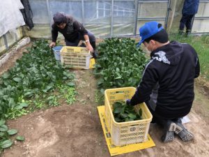 ハウスの中では、ほうれん草、春菊等の収穫をしています。